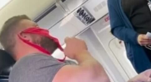Adam Jenne, de 38 años, se puso esa prenda en lugar de un tapabocas para ilustrar lo “absurdo” de la norma que obliga a llevar una mascarilla en los aviones por el covid-19, según explicó al canal NBC2 News.