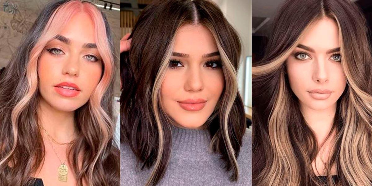 Se trata de unas mechas frontales que se llevan en un tono diferente al tono del resto del cabello, ya sea en rubio, rosa, dorado, platinado, o el tono que prefieras.