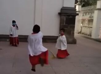 Escuchar las campanas de una iglesia para ir a la acostumbrada misa, en el caso de los católicos, nunca había sido tan divertido y es que con estos tres monaguillos esa forma cambió.