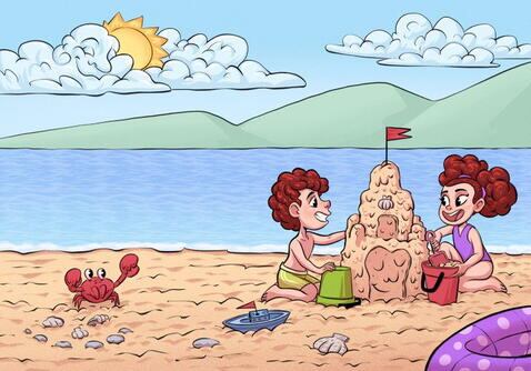 Uno de los rostros está oculto en el castillo de arena, mientras que el segundo se encuentra justo debajo del cangrejo.