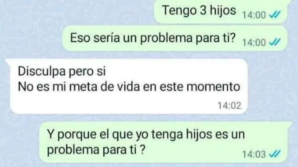 Según consigna el diario argentino La Voz, la mujer le señaló al hombre lo siguiente: “Tengo tres hijos. ¿Eso sería un problema para ti?”.