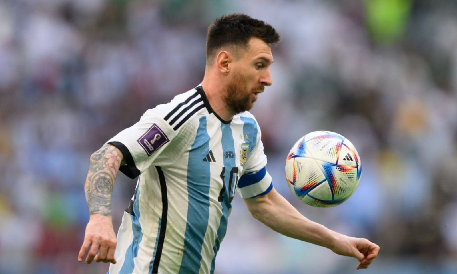 Leo Messi con Al Rihla, el balón oficial del mundial