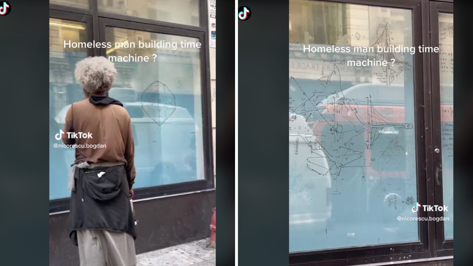 En las imágenes es posible ver al hombre misterioso mirando fijamente a su diseño de una máquina del tiempo que abarca por lo menos cinco ventanales totalmente rayados, lo que ha enloquecido a las personas en TikTok.