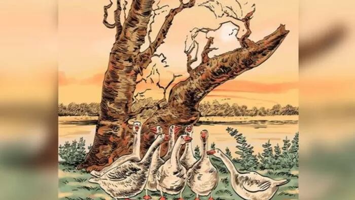 Si pones mucha atención, te darás cuentas que está presente en el árbol, justo arriba de los patos, así que te felicitamos si lograste hallarlo.