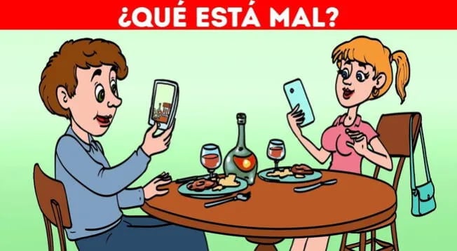 No pierdas más el tiempo, manos a la obra y descubre cuál es el error en la imagen de la pareja cenando.