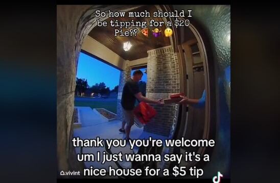 Luego de entregar la pizza, recibió una propina de cinco dólares americanos, lo cual le pareció muy poco para lo lujosa que es la casa donde entregó el servicio, reaccionando con una actitud grosera y exclamando: “Solo voy a decir que esta es una muy buena casa por sólo cinco dólares”.
