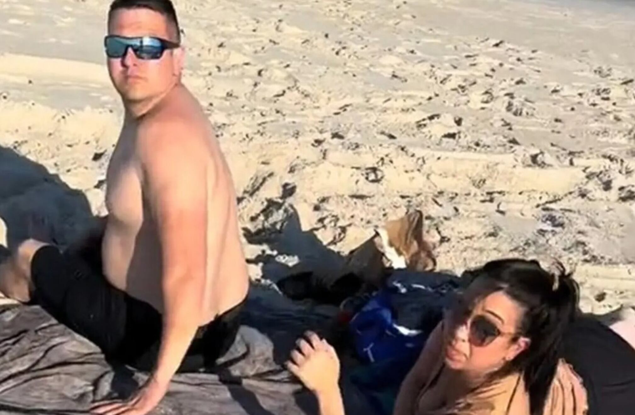Kelly Smith al descubrir a su marido tirado en la arena con otra mujer, comienza a presentarse: “Soy su esposa embarazada de nueve meses”.