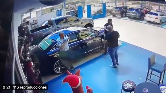 Un video captado por una cámara de seguridad reveló como dos delincuentes armados robaron las pertenencias a personas que se encontraban en un patio de carros, norte de Guayaquil.