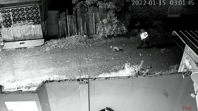 En este video el hombre llega y al escuchar ladrar a un perro se indigna y lo lanza al piso causándole duros golpes.