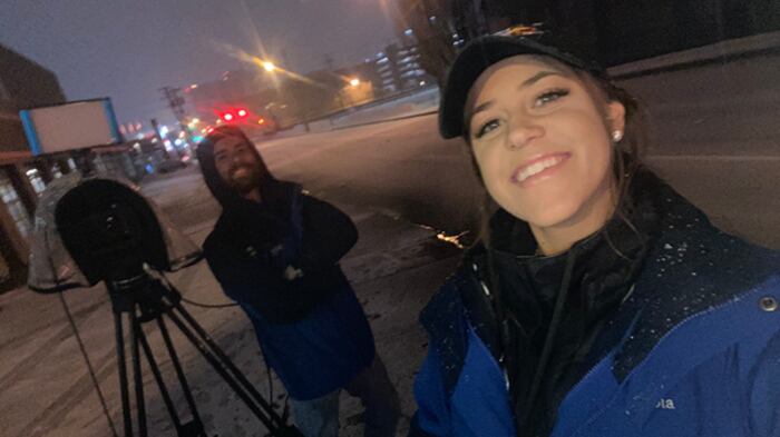 “¡Oh Dios mío! Me acaba de atropellar un coche, pero estoy bien. Acabo de ser atropellada por un automóvil, pero estoy bien, Tim”, dijo de inmediato la reportera a Tim Irr, presentador del medio local WSAZ T.