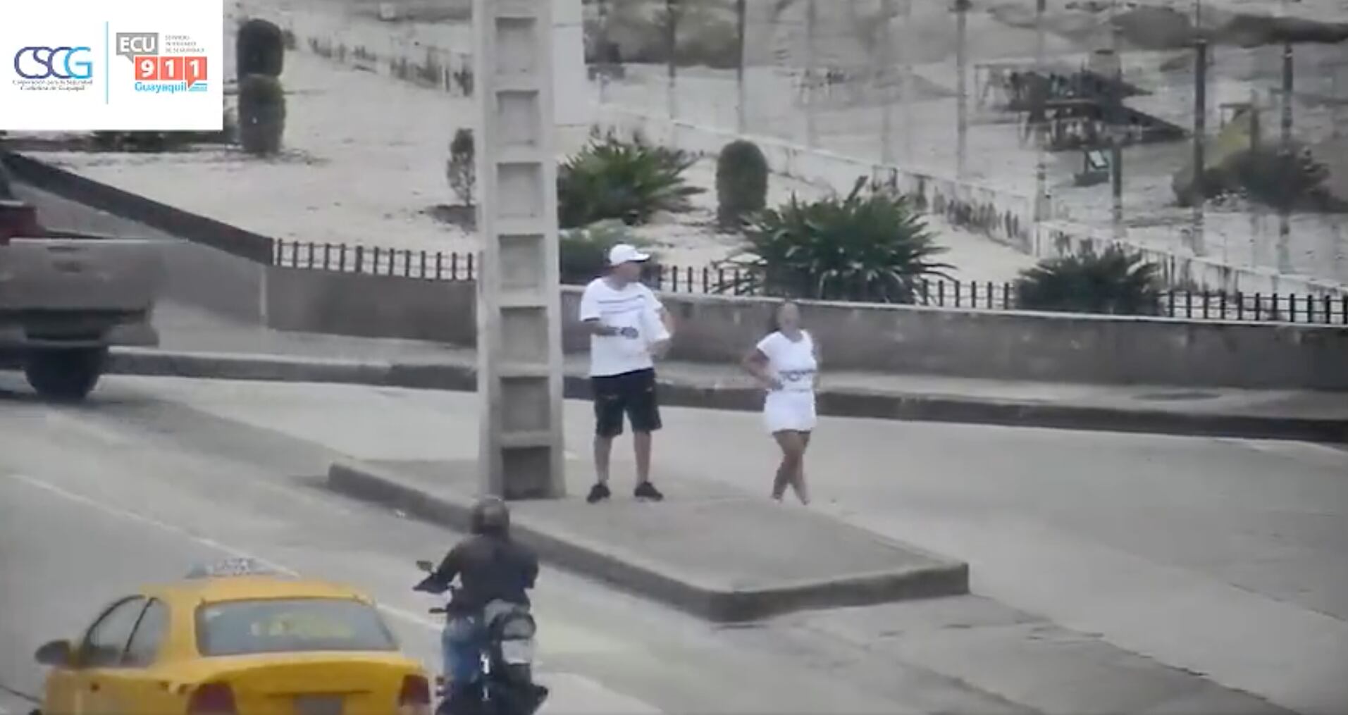 Las cámaras de la Corporación para la Seguridad Ciudadana de Guayaquil (CSCG) captaron el momento en que una pareja discutía en la avenida Juan Tanca Marengo, en el norte de Guayaquil pero esto luego se convirtió en una agresión física.