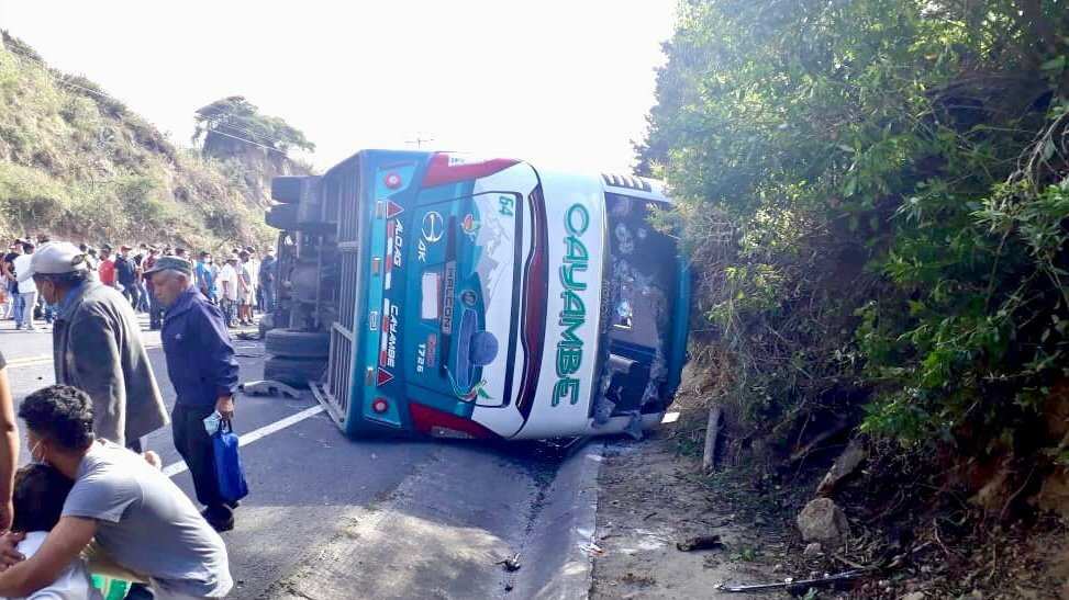 Dos personas fallecieron y otras 13 resultaron heridas este sábado en accidente de bus de transporte público ocurrido en la localidad de Guayllabamba, en la “Y” de Cusubamba.
