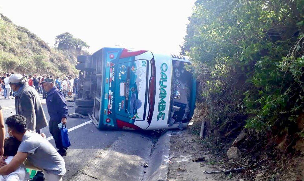 Dos personas fallecieron y otras 13 resultaron heridas este sábado en accidente de bus de transporte público ocurrido en la localidad de Guayllabamba, en la “Y” de Cusubamba.