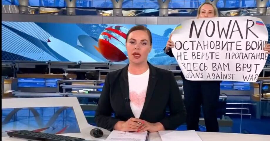 Un insólito momento se vivió en vivo en un noticiero en Rusia, cuando una mujer irrumpió con un cartel de “Paren la guerra”.