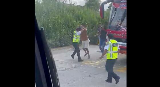 Al inicio de la grabación se ve como los uniformados siguen al hombre – al parece el enfrentamiento nació durante un proceso de revisión de documentos en la vía- que comienza a intercambiar golpes con uno de los agentes.