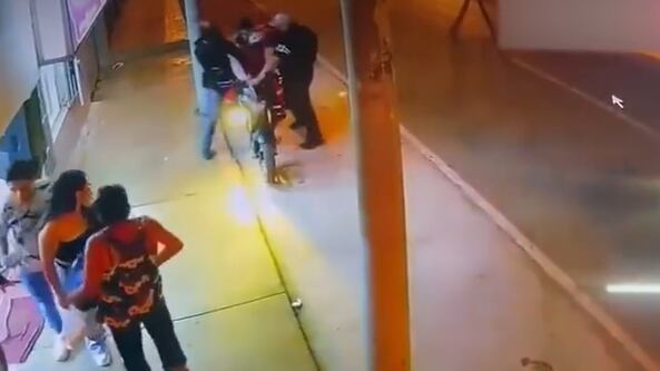 Allí se observa a dos ladrones acercándose por atrás de un repartidor motorizado, el cual estaba estacionado.