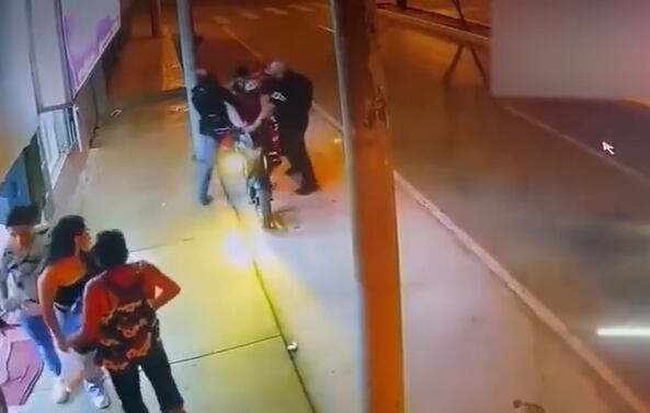 Allí se observa a dos ladrones acercándose por atrás de un repartidor motorizado, el cual estaba estacionado.