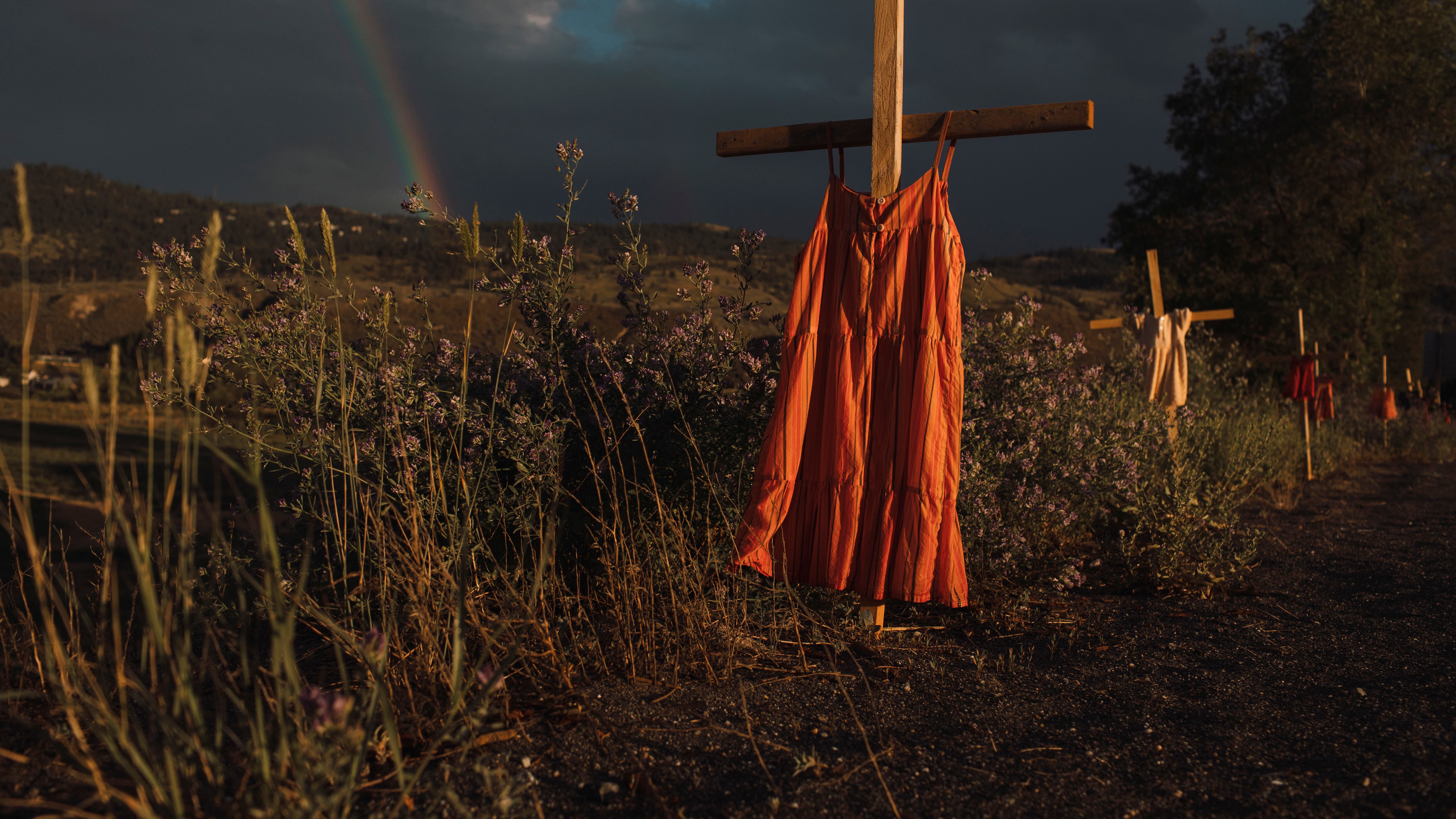 La foto ganadora de este año muestra vestidos rojos colgados en cruces que rinden homenaje a los niños que murieron en el internado indígena de Kamloops, en Canadá.