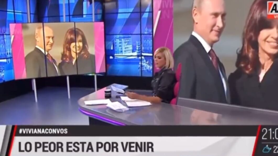 La conductora Viviana Canosa, que se caracteriza por un estilo deslenguado e irresponsable, mostró una foto del presidente de Rusia y la vicepresidenta de Argentina, a los que dejó en el suelo.