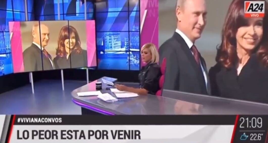 La conductora Viviana Canosa, que se caracteriza por un estilo deslenguado e irresponsable, mostró una foto del presidente de Rusia y la vicepresidenta de Argentina, a los que dejó en el suelo.