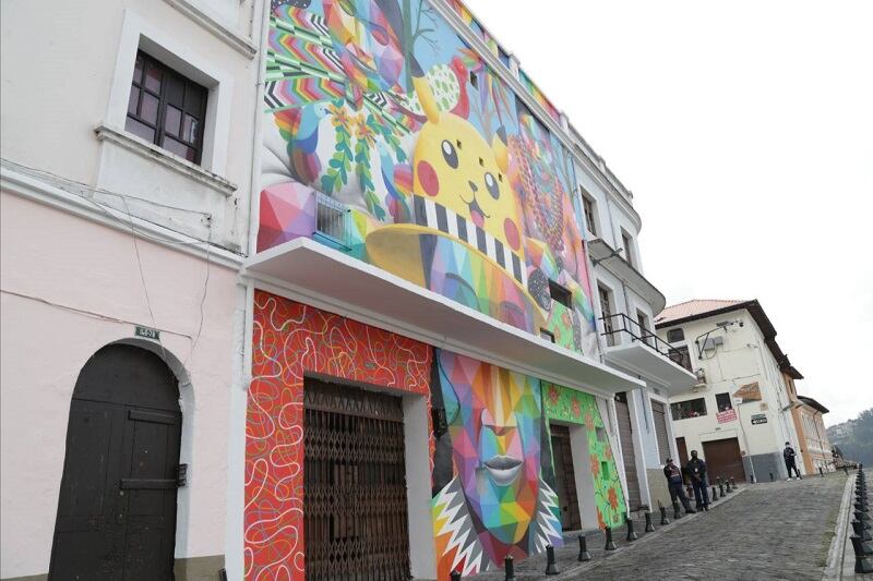 Para la obra de Okuda no se emplearon recursos públicos fue donada por la Embajada de España en Ecuador, el Ayuntamiento de Llanos de Aridane y Gobierno Autónomo de las Islas Canarias; Fundación Telefónica Movistar y Pintulac.