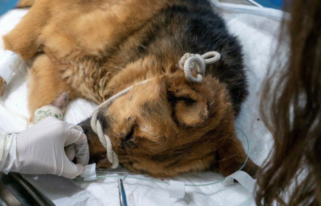 Cibu fue atropellado cruelmente por un conductor que no se inmutó ni frenó al ver a tres perros que estaban en la calle. Su estado es crítico pues producto del atropellamiento tuvo una fuerte lesión en su columna.