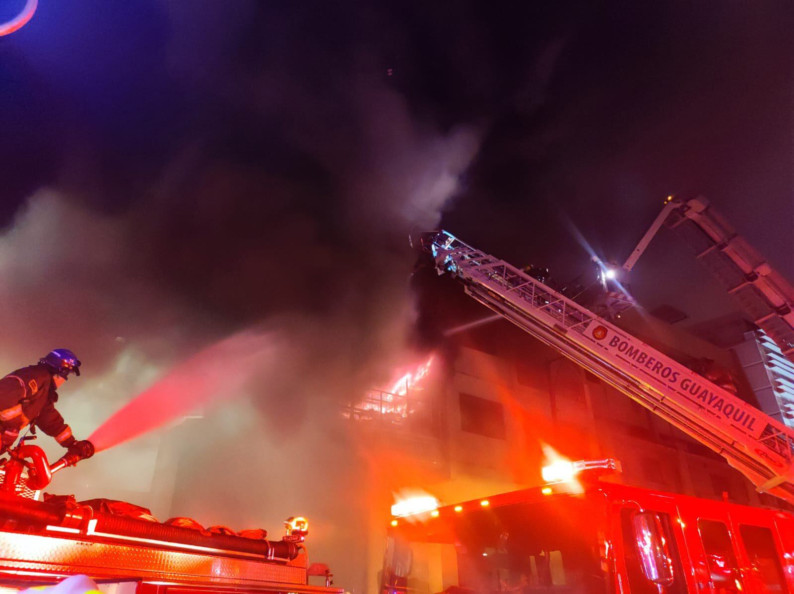 Durante la noche del lunes se reportó un incendio en un edificio en el sector de La Bahía, en el centro de Guayaquil. El Cuerpo de Bomberos trabajó durante horas para lograr controlar la emergencia.