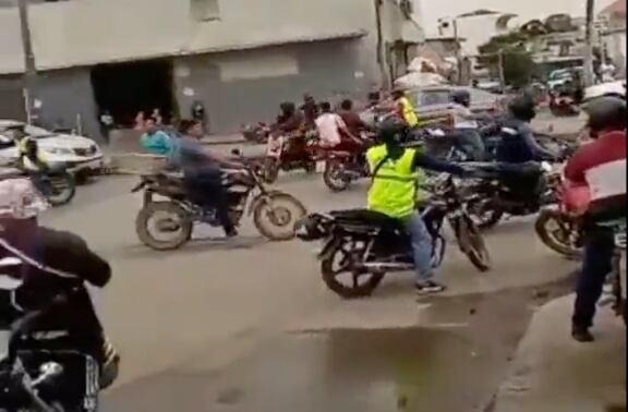 En el sonido de fondo que acompañó a la grabación se escucha cómo los manifestantes hacen sonar la bocina de las motos, mientras la persona que grabó repetía constantemente: “Están cerradas las calles”.
