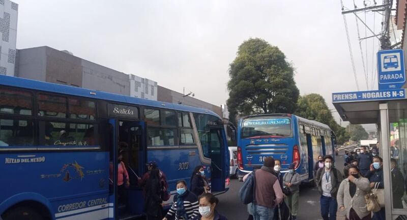 La ruta alimentadora Oyacoto del Transporte Municipal, que opera desde Carcelén, al momento solo llega hasta Calderón por el cierre de vías.