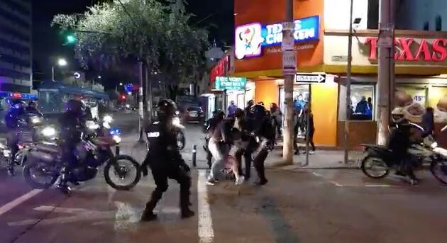 Minutos después, en la avenida 06 de Diciembre y Roca varios motorizados comenzaron a aprehender a ciudadanos presentes. Primeros reportes apuntan que las detenciones fueron arbitrarias; autoridades no se han pronunciado al respecto.