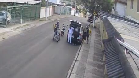 En Ceibos, norte de Guayaquil, los delincuentes pasaron por una de las calles del sector para evaluar la zona y regresar a intimidar a las víctimas. Estas últimas estaban con el capo abierto de su automóvil en lo que parece ser con compras en su interior.