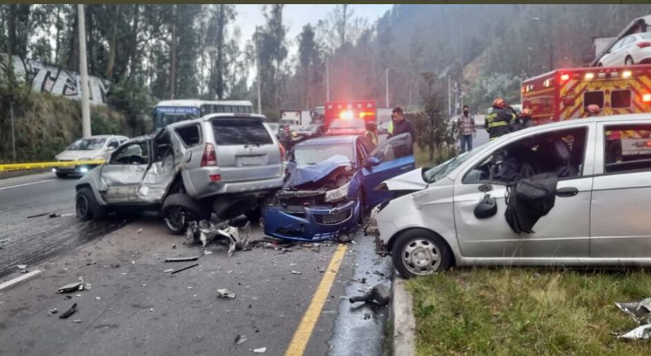 Un choque múltiple en el que estuvieron involucrados cuatro vehículos dejó como resultado a cuatro personas heridas y a una fallecida. Este terrible accidente de tránsito se suscitó en la avenida Simón Bolívar, sector de la Hormigonera, cerca de las 07:00 de este sábado.