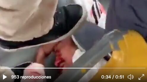 En las imágenes captadas por uno de los testigos se precia cómo dos hombres golpean en repetidas ocasiones al ladrón. Incluso le pisan la cabeza contra el asiento provocando fuertes heridas en su rostro.