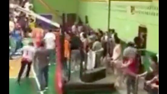 El enfrentamiento tomó mayor fuerza cuando todos los involucrados se pegaron contra una de las paredes del coliseo y ahí siguieron intercambiando ataques. No obstante, varios presentes intentaron tranquilizar la situación mientas que otros subieron a la base de la canasta de basket para visualizar la pugna.