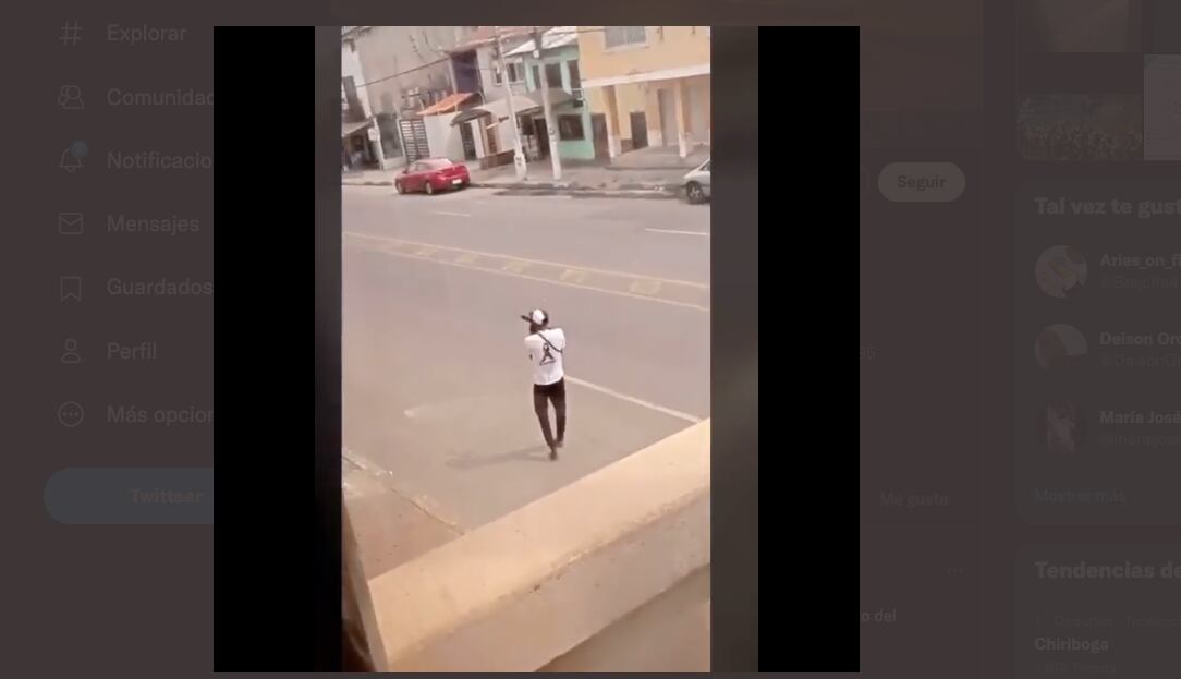 El usuario Ismael B. quien grabó el video indica que los sujetos estaban sosteniendo un rifle y una pistola sobre la avenida Pedro Vicente Maldonado, vía que divide la ribera de los barrios periféricos y el centro norte de esa localidad.