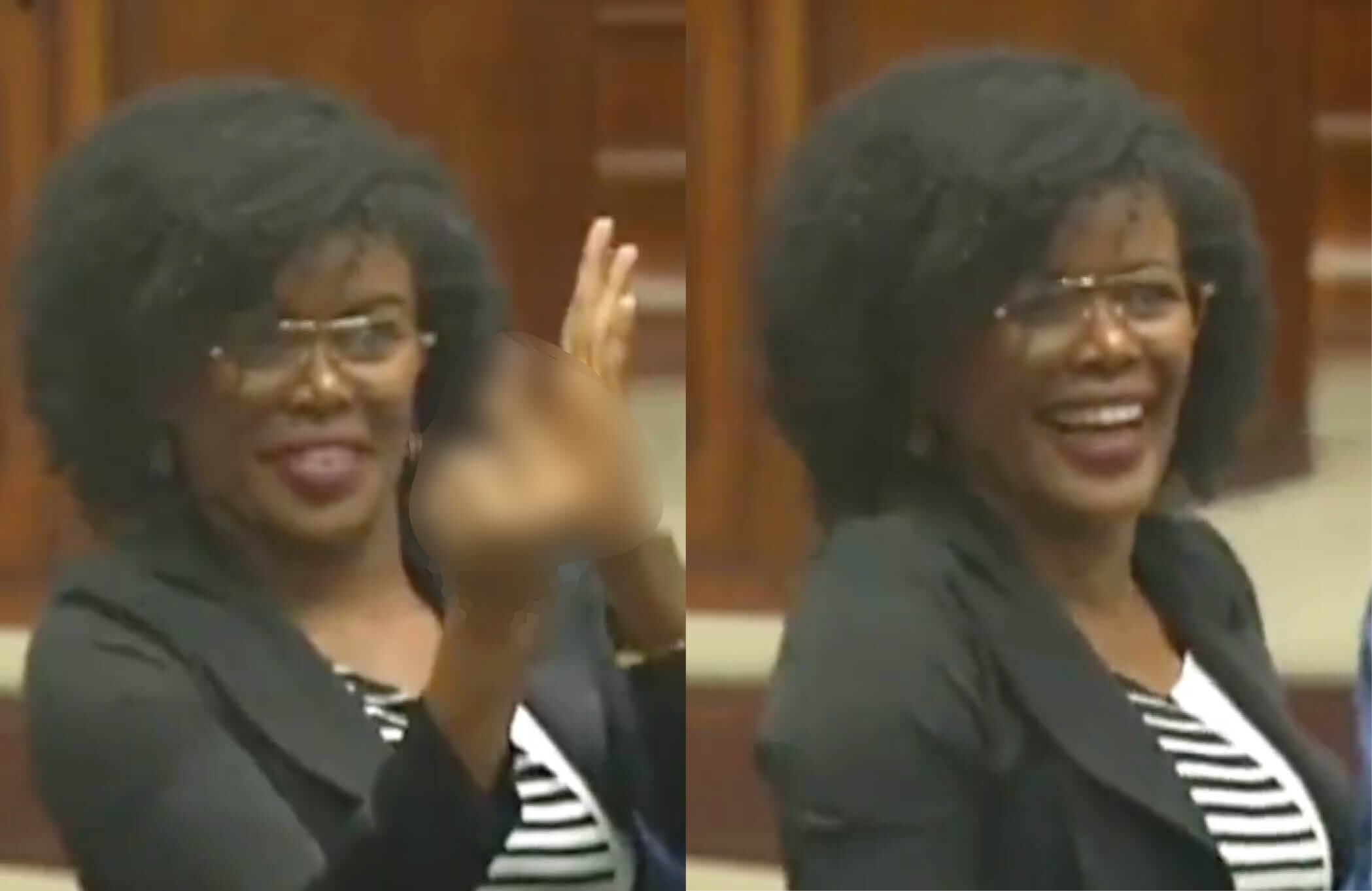 En las imágenes se pudo observar a la asambleísta señalando varias veces en una sola dirección mientras está sonriendo. Luego sacó el dedo del medio, mientras tapaba el gesto con la palma de la mano.