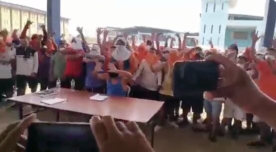 Con camisetas cubriendo su rostro, decenas de reos gritaron que no “quieren a nadie del pabellón 2 de la Penitenciara del Litoral”. Al final del video, un sujeto grita: “100% Choneros”.