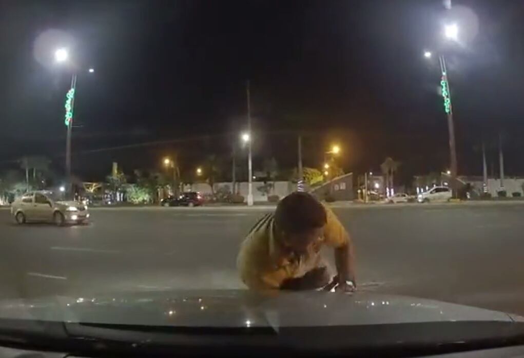 En las imágenes se ve cuando un sujeto se acerca al auto en movimiento y se topa con la parte delantera del carro, cae al suelo y comienza a hacer gestos de dolor. En pocos minutos, llega una motocicleta y cuando ve al supuesto herido reclama, pero la conductora no se baja del auto porque presume que se trataría de un intento de robo. Este incidente ocurrió a las 22:19 del 4 de diciembre.
