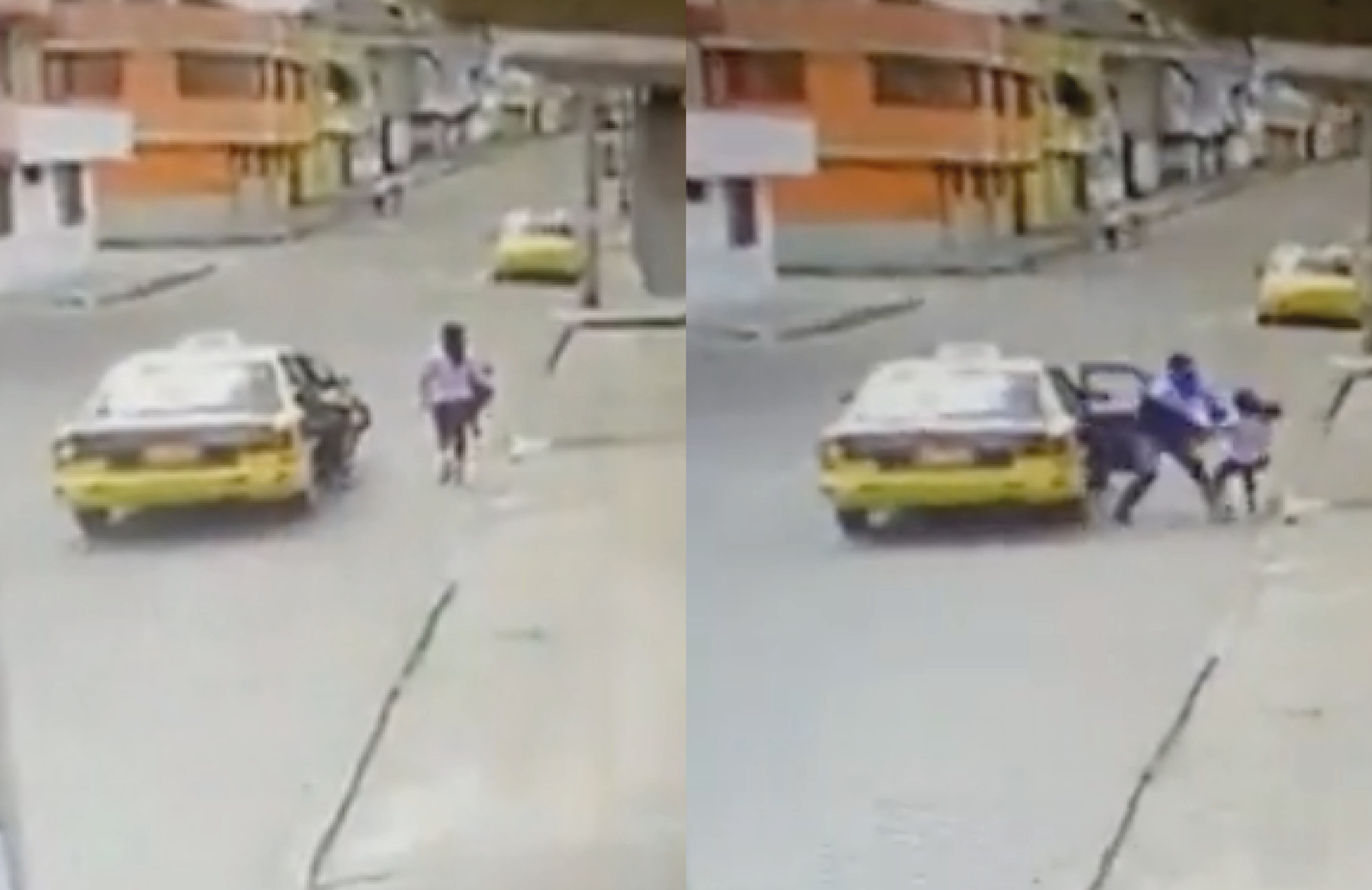 El mismo empieza a acelerar hasta que frena a raya a lado de la moradora. De pronto, un sujeto sale del asiento trasero y se le lanza a la víctima.