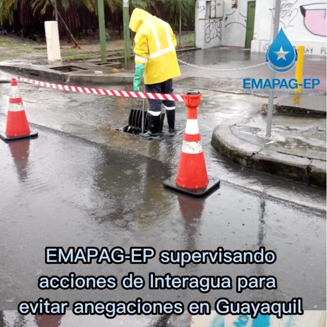 Según la cuenta de Instagram de Emapag EP, la empresa está supervisando a @interagua.ec en el cumplimento de sus funciones para evitar taponamientos en varios sitios.