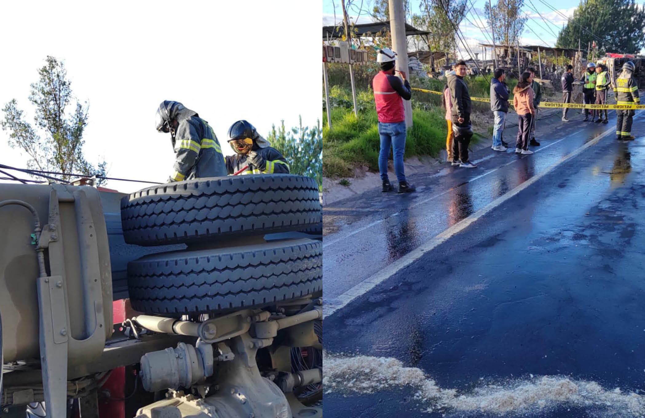 Según el Cuerpo de Bomberos de Quito en sus redes sociales: “Colocamos material absorbente para contener derrame de combustible y evitar derrape de vehículos”.