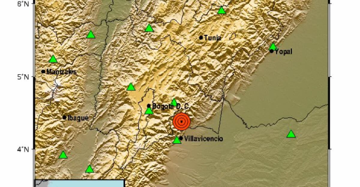 Según el Servicio Geológico Colombiano, el sismo ocurrió a las 12:04 y su epicentro fue localizado en el norte del departamento del Meta, a pocos kilómetros de Bogotá.