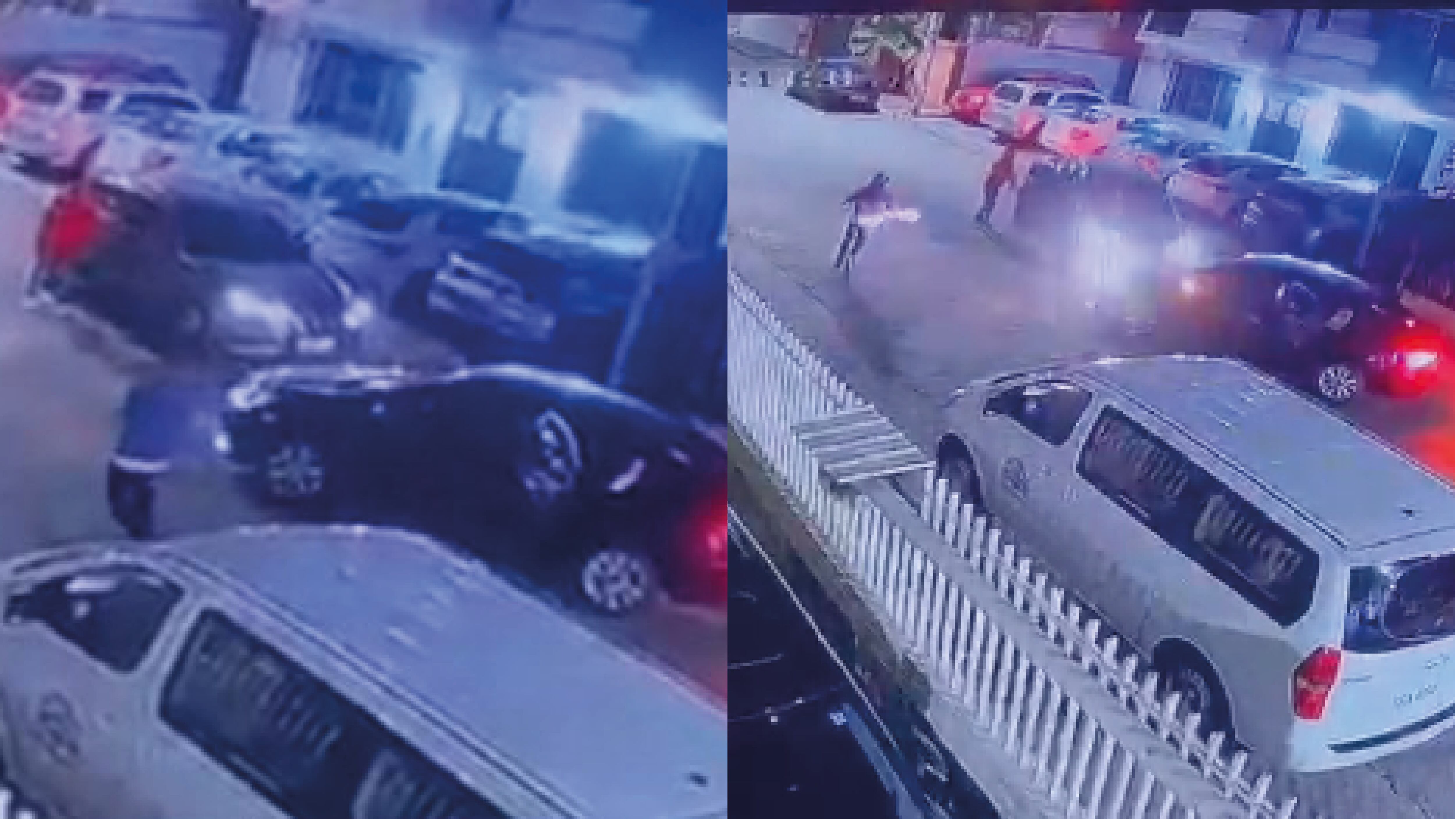 En las imágenes se ve que al auto le cierran el paso para que no puedan huir y en ese momento se bajan tres sujetos armados que apuntan al conductor. La víctima trata de escapar pero uno de los ladrones logra abrir la puerta del copiloto para meterse al auto.