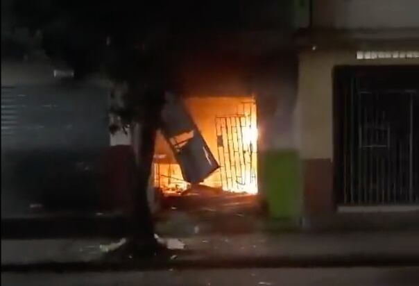 Los extorsionadores habrían llegado en una motocicleta y arrojaron el artefacto explosivo contra el establecimiento que se dedica a la venta de medicamentos, lo que dejó completamente destruido el local.