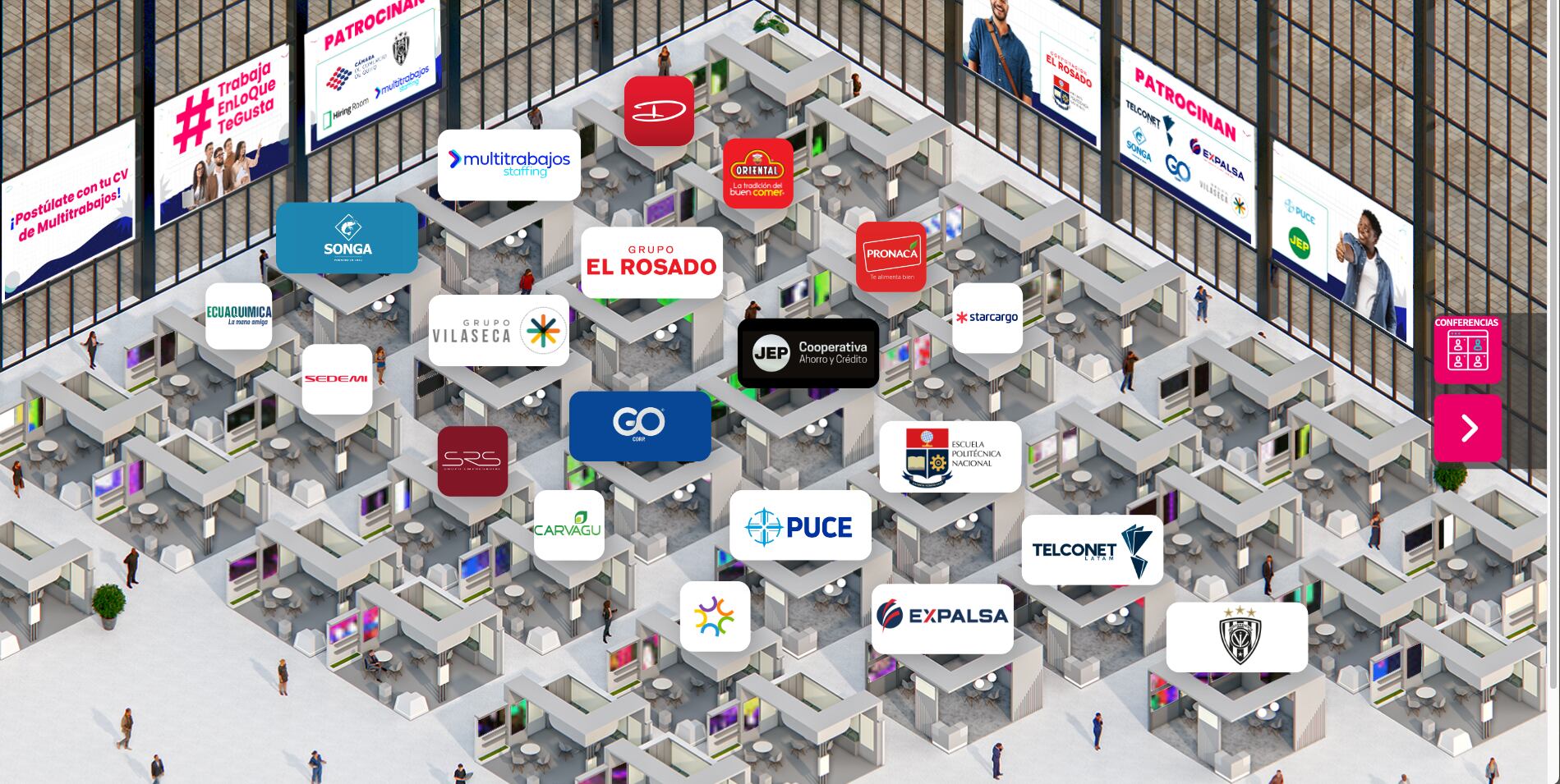 -Se le aparecerá todos los stands disponibles, por lo que deberá ingresar en la empresa en la que estaría interesado.