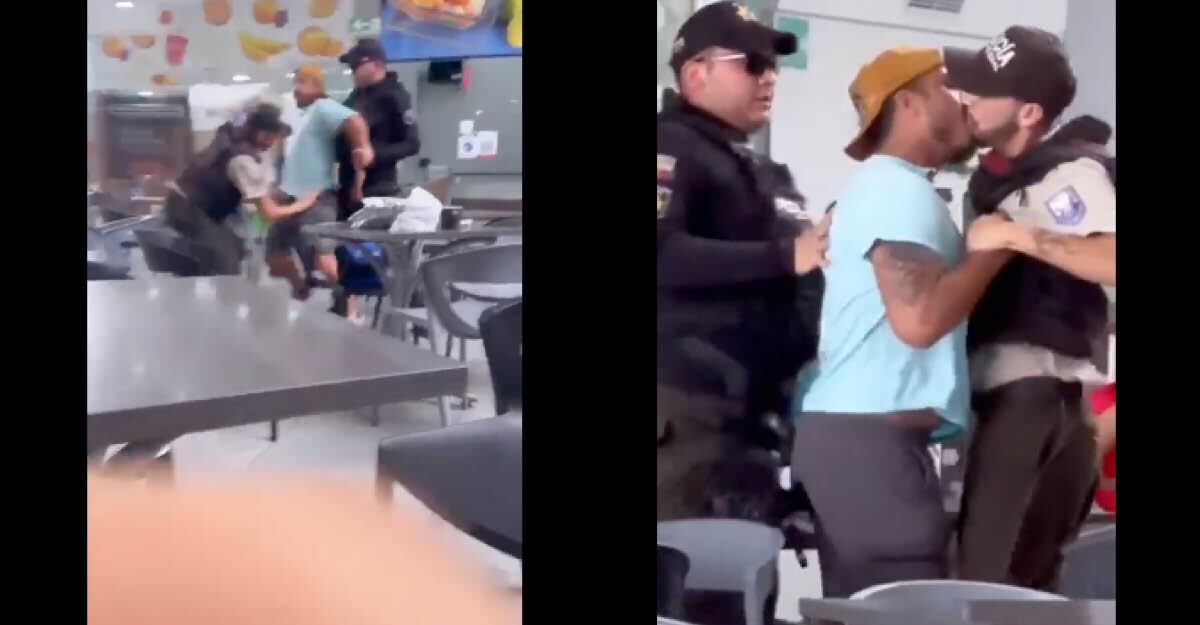 Luego de la supuesta captura, hay un beso el hombre con uniforme de policía y el “delincuente”. Ante esto, la Policía Nacional reaccionó por el mal uso de la imagen institucional.
