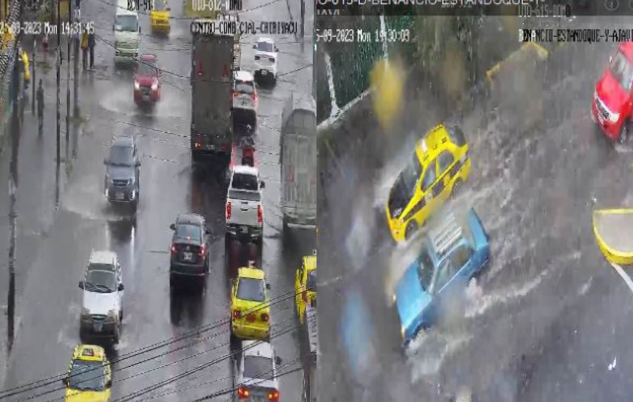 El ECU 911 publicó varias imágenes de diferentes calles del centro y sur de Quito, donde se pueden observar acumulación de agua por la lluvia; debido al clima que se vive en la capital piden a la ciudadanía conducir y movilizarse con precaución.