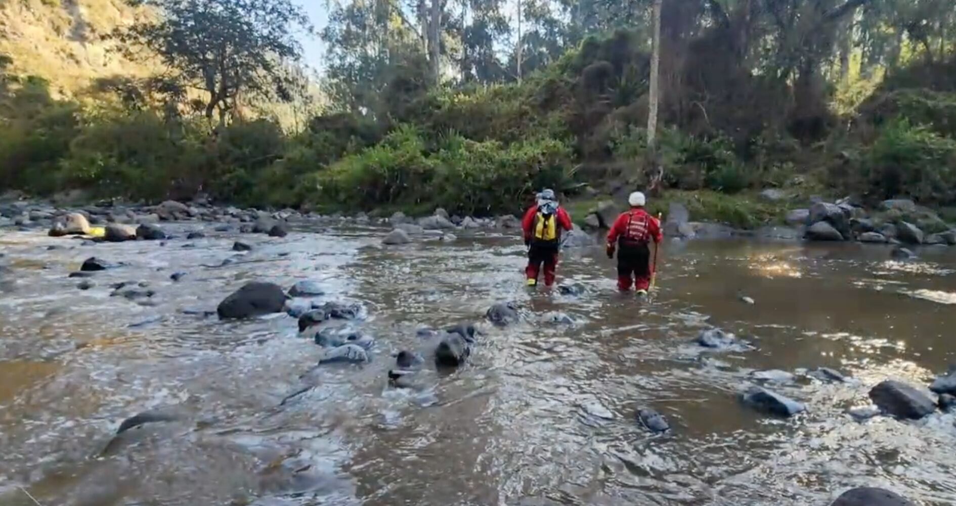 En la red social X, los bomberos compartieron imágenes en las que se pudo evidenciar que recorrieron el río con vestimenta especial. Una vez identificado el cuerpo, lo colocaron en una camilla que fue jalada con cuerdas hasta las estribaciones del río.