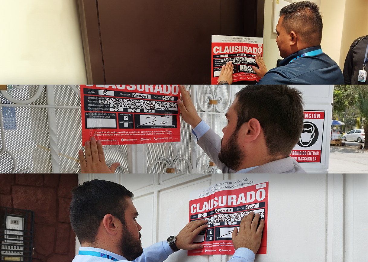 Varias irregularidades fueron evidenciadas durante inspecciones de vigilancia y control en las que, como resultado, clausuraron tres establecimientos de Guayaquil que ofertaban cirugías estéticas, dos como medida provisional de protección y una como medida cautelar dentro de un procedimiento administrativo sancionador.