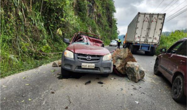 La tarde de este miércoles 1 de noviembre de 2023, en Vía Alóag, Santo Domingo, km 86, se produjo un accidente. Una piedra cayó sobre un vehículo. Al momento, se encuentra habilitado el paso vehicular según informó la Prefectura de Santo Domingo.